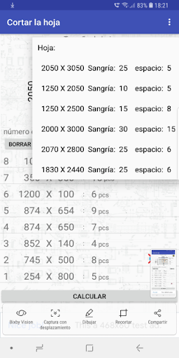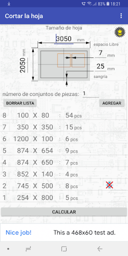 Hoja de corte, esta aplicación calcula el número de hojas de material de hoja necesarias para la producción en la lista de piezas especificada. La aplicación le permite ver el mapa de corte y también proporciona información de referencia sobre el cálculo: la relación de uso de materiales, el área de todas las piezas, el perímetro de las piezas.