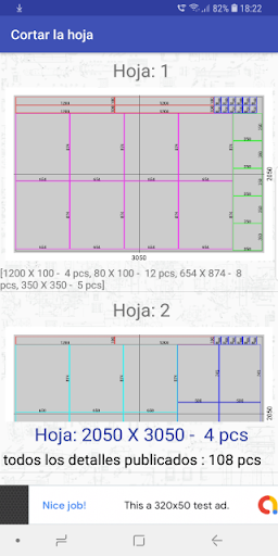 El algoritmo de la aplicación siempre es automático, primero se despliega el detalle más grande, a continuación, todos los demás, el cálculo de la disposición se lleva a cabo en el principio de la menor basura, pero se tiene en cuenta la optimización de la anidación para las máquinas formateadas.