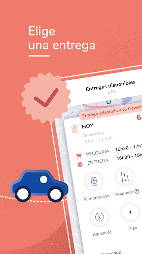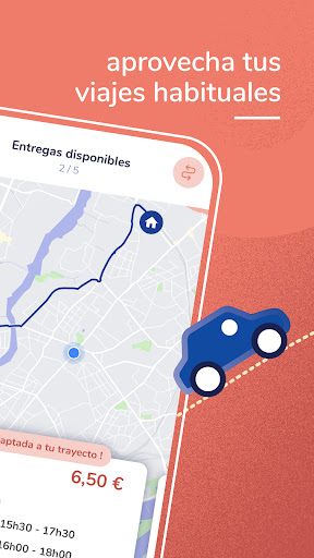 - Gane una media de 6 euros por entrega: optimice sus desplazamientos regulares y gane un extra a fin de mes.