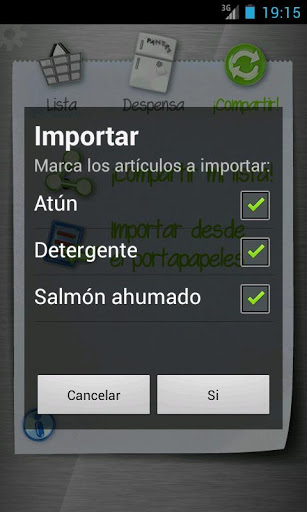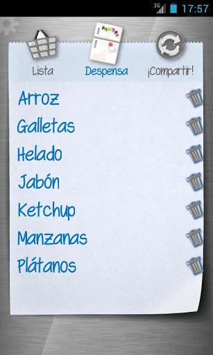 Tanto si vas al supermercado, al mercado de los jueves, a un centro comercial o a la tienda de la esquina, prueba llevar contigo ListOn y verás cómo no te olvidas ni una sóla compra. ListOn te ayudará a recordar cada uno de los artículos que necesitas comprar y a almacenarlos en tu propia despensa virtual. Para la siguiente compra, tan sólo tendrás que echar un vistazo a tu despensa e ir moviendo artículos a tu lista con sólo pulsar sobre éstos.