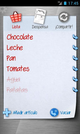 ListOn permite añadir artículos, tacharlos y moverlos a la despensa para poder recuperarlos en tu próxima compra. Todo ello sobre una interfaz amigable e intuitiva, brindándote la posibilidad de elegir entre varios temas visuales de acabado impecable. Además, mientras introduces un nuevo artículo, ListOn te sugiere productos existentes para que no tengas que escribir de más. Se incluyen productos de alimentación, aperitivos, bebés, bebidas, carnicería, charcutería, hogar, congelados, droguería, frutas y verduras, horno y bollería, lácteos, mascotas, perfumería y pescados. Apunta los ingredientes para tu próxima receta en ListOn y deja que se convierta en tu asistente de cocina ideal.