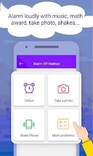 ✔️ Best alarm clock app - Cool alarm clocks has various alarming options: ringtone alarm, time, date, image, math problem, shake.