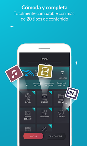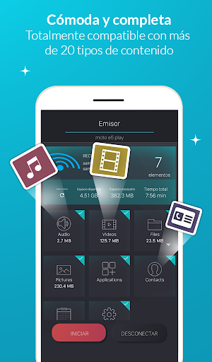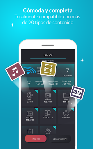 Transferencia fácil de contenido de un teléfono a otro; las funciones de respaldo de fotos, videos y música hacen que SmartIO sea muy útil.