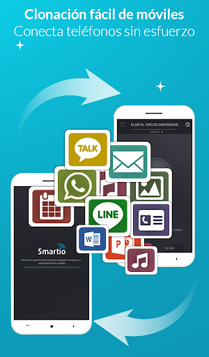 Esta app ofrece una solución de transferencia de contenido para las principales plataformas de smartphones, como iOS, Android, Blackberry, Windows y Java/J2ME, etc. Una app de transferencia de contenido que permite a empresas de telecomunicaciones, tiendas de reparación de dispositivos móviles, franquicias de smartphones/tablets y distribuidores locales transferir datos de un teléfono a otro muy fácil. SmartIO es una app muy rápida, solo tienes que conectarte a través del escáner de códigos QR y en pocos minutos, puedes gestionar de manera eficiente la transferencia de contenido.