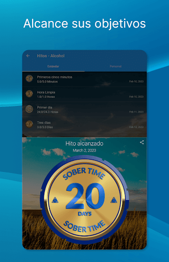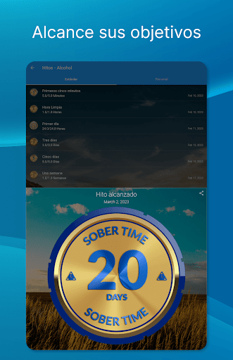 Comience o continúe su viaje de recuperación sobrio: El contador de días sobrio de Sober Time está ayudando a miles de adictos en recuperación a recuperarse de adicciones graves como el abuso de sustancias, alcoholismo, drogadicción, tabaquismo o autolesiones.