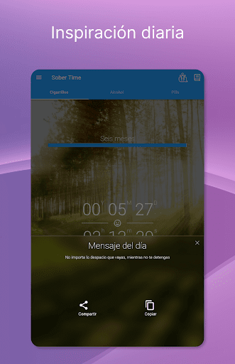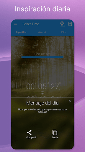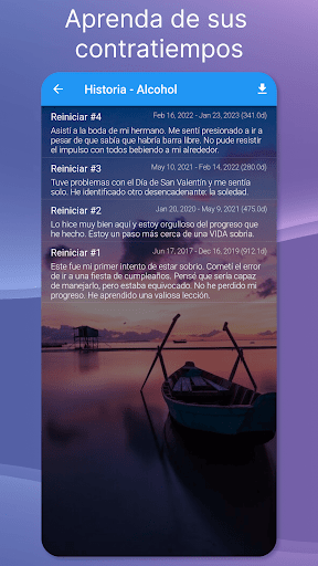 La sobriedad necesita motivación y una estructura de apoyo. Se mantendrá motivado con mensajes diarios, objetivos y viendo pasar su contador de sobriedad. Nuestra comunidad activa proporciona conexión humana, permitiéndole compartir y aprender de personas con años o incluso décadas en su reloj de sobriedad.