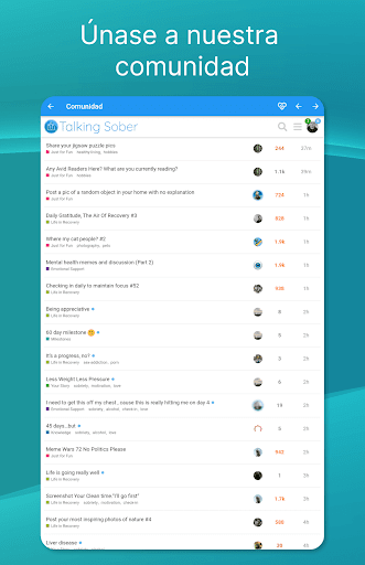 Discuta temas como el alcoholismo, el abuso de sustancias o simplemente comparta su contador de días sobrios.