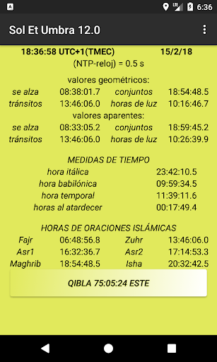 Sol Et Umbra también muestra la hora de acuerdo con los siguientes sistemas de tiempo: