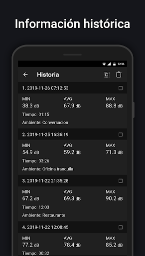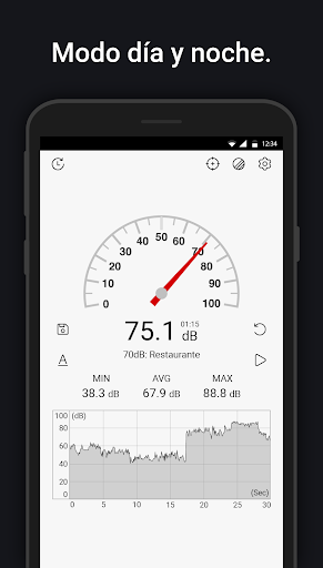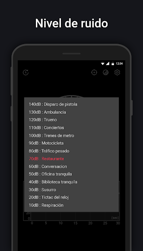 Sonómetro use el micrófono del dispositivo para medir el ruido del entorno en decibelios (dB). Comparado con el medidor de sonido real, el valor de decibel (dB) puede variar.