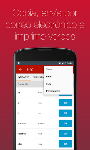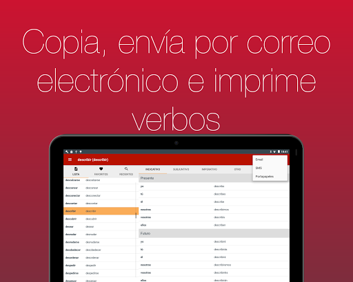 ● Incluye la posibilidad de copiar, enviar por e-mail e imprimir verbos.