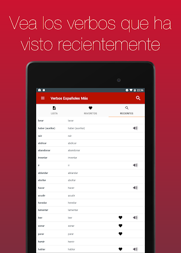 Ahora con audio! No está seguro de cómo pronunciar un verbo? Ahora puedes oír cómo se pronuncia cada verbo. Sólo tienes que pulsar en el botón al lado de la conjugación. Nota: esta funcionalidad requiere una conexión a Internet.