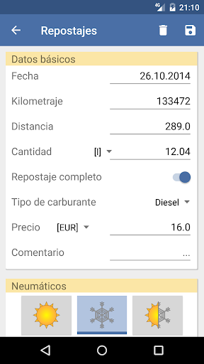 • Registrar nuevos repostajes, costes y recordatorios