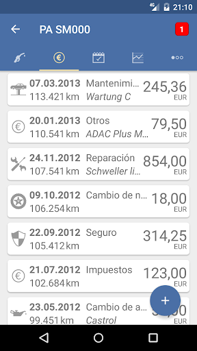 • Mostrar y editar datos de consumo, costes y recordatorios por vehículo