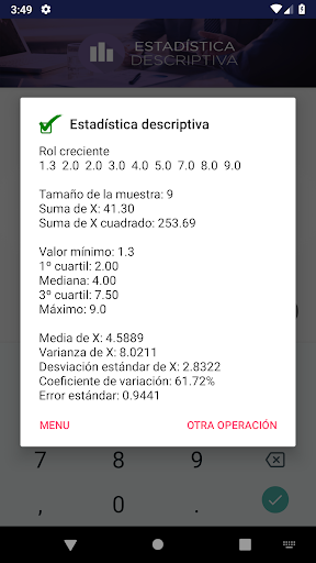 Calculadora de estadística básica con las siguientes funciones: