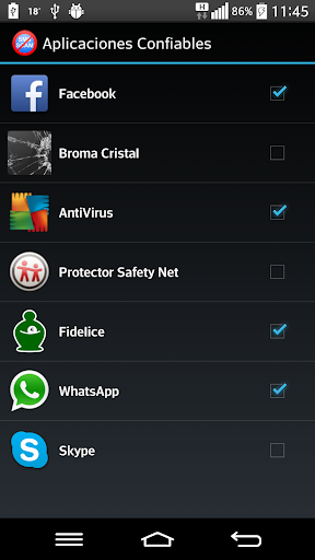 Se ha incluido una opción de menu para excluir aquellas aplicaciones que se consideren fiables.