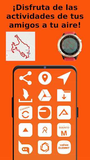 - Comparte la ruta de GPS con tus amigos o seguidores a través de aplicaciones de mensajería instantánea, correo electrónico, redes sociales, ...