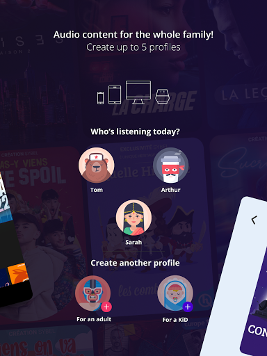 Tu cuenta Sybel también te permite disfrutar de un tiempo especial con tu familia, con historias de audio para niños. Nuestro modo "Kid" permite escuchar de forma segura todos nuestros podcasts premium. Audiolibros, podcasts, literatura en audio, streaming, series de podcasts, lo llames como los llames, lo que estás buscando está en Sybel.