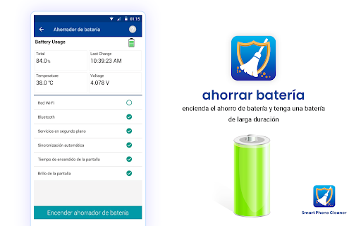 Cleaner For Android le permite analizar el uso de la batería de su dispositivo y finaliza las aplicaciones que causan el agotamiento de la batería. El agotamiento de la batería puede deberse a aplicaciones que ya no están en uso, o las que se ejecutan en segundo plano. Le permite cerrar dichas aplicaciones y ahorrar batería. Además, también muestra la temperatura del dispositivo.