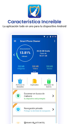 Cleaner For Android también protege su dispositivo contra ataques e infecciones de malware. Con la integración de la aplicación Anti-Malware, puede escanear fácilmente en busca de malware y prevenir la corrupción e infección de datos.