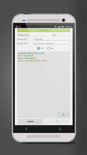 You can transmit (String or Hexadecimal) and receive data to specific server using TCP/IP communication.