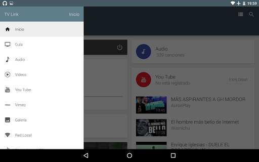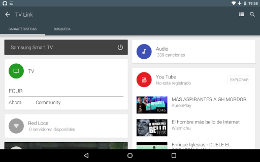 Ya sea para ver programas de TV en vivo, enumerar y reproducir contenido desde dispositivos USB conectados, transferir medios desde dispositivos de red locales o reproducir vídeos de YouTube, TV Link ofrece una función de medios ricos y eficaces para controlar su televisor inteligente. Por favor, instale y ejecute la aplicación TV Link en su televisor inteligente/reproductor Blu-ray inteligente antes de conectarse con el cliente de Android. No es necesario iniciar manualmente TV Link en su televisor inteligente/reproductor Blu-ray después de que la configuración inicial se haya completado.