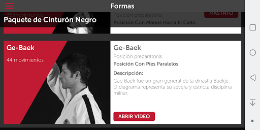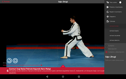 Todas las formas incluidas Saju - Jirugi y Saju - Makgi. Cada forma vista desde cuatro ángulos diferentes, paso por paso y con la opción de repetir cada movimiento. Todos los movimientos con su traducción en Coreano e Inglés. Además de los diagramas y la historia de cada forma. Fácil de seguir y fácil de usar tanto en tu casa como en el dojang.