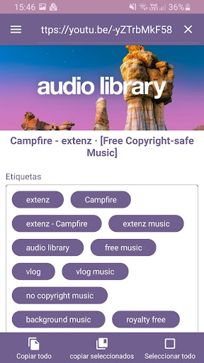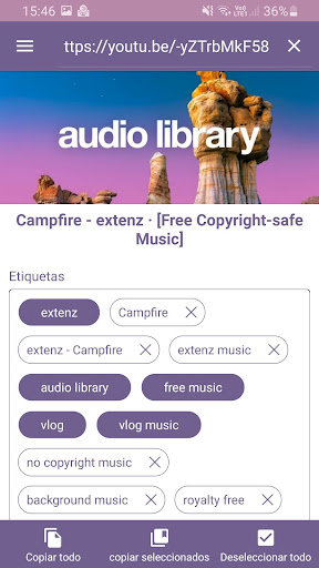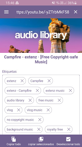 Usar la aplicación es muy simple. Presione el botón de búsqueda y escriba o pegue el enlace del video en el campo de búsqueda. Cuando ejecute la búsqueda, se mostrarán las etiquetas de video. Estas etiquetas se pueden seleccionar y copiar para usarlas en los videos de tu canal. Además, también es posible seleccionar y copiar una etiqueta individualmente haciendo un largo clic sobre ella.