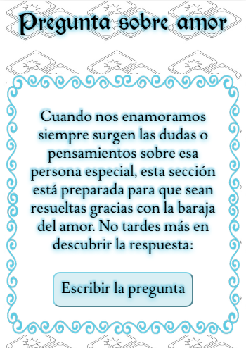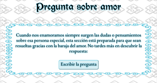 Puedes realizar preguntas sobre el amor, empleo, familia y la salud contando con una baraja especial para cada uno de esos ámbitos y así la tirada sea mucho más efectiva.