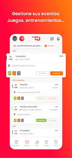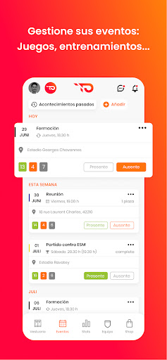 🗓️ PLANIFICACIÓN: Agrega rápidamente y fácilmente tus eventos recurrentes (entrenamientos), puntuales (entrenamientos específicos, reuniones, fiestas) o tus partidos. Administra tu calendario en un abrir y cerrar de ojos y no te pierdas ningún evento importante.