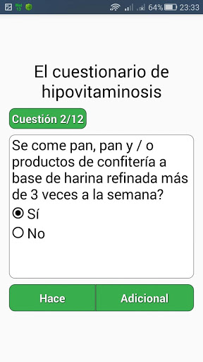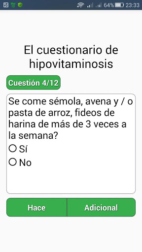 En lo que necesita para responder a todas las cuestiones relativas a la salud de su hijo o usted mismo y el consumo de estos alimentos por debajo (100 g), en promedio, durante el mes pasado, respondiendo "sí" o "no."