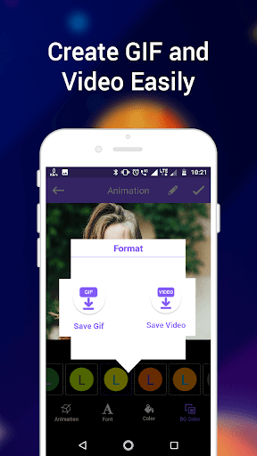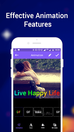 Crear texto animado en el fondo de tu favorito La foto capturada desde cualquier galería o cámara, guárdelo como un GIF o video o comparta con alguien en sus cumpleaños, aniversario o ocasión especial y sorpréndeles. Este creador de animación le permite hacer una animación de texto de su color, estilo y fondo favoritos. Puede editar el texto al mismo tiempo que realiza GIF también por