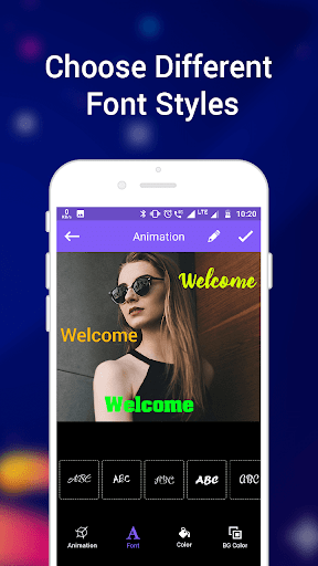 * Aplique la fuente favorita Color, estilo y fondo para crear texto animado.