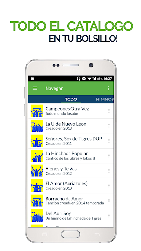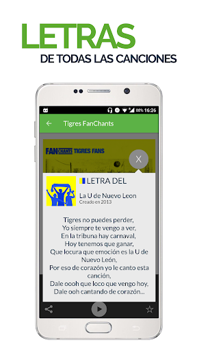 para escuchar en tus parlantes, enviar a amigos y usar como ringtones de fútbol. Reciba notificaciones para escuchar nuevos cánticos de fans de Tigres y use la opción de grabación para añadir nuevos