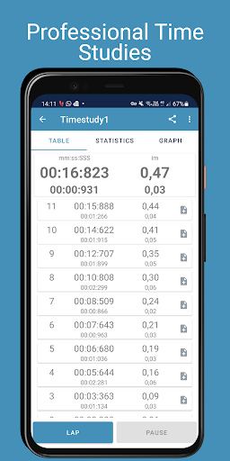 Cronómetro simple, rápido y ligero para Ingeniería Industrial. Útil para realizar estudios de tiempo en entornos industriales. Gran aplicación para capturar el tiempo takt y el tiempo del ciclo de una manera fácil y rápida.