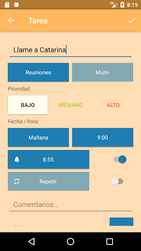 - Utilice las opciones "Recordatorio" y "Repetir";
