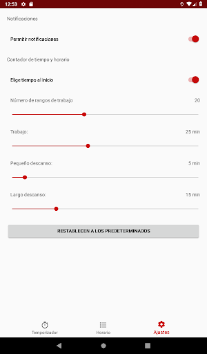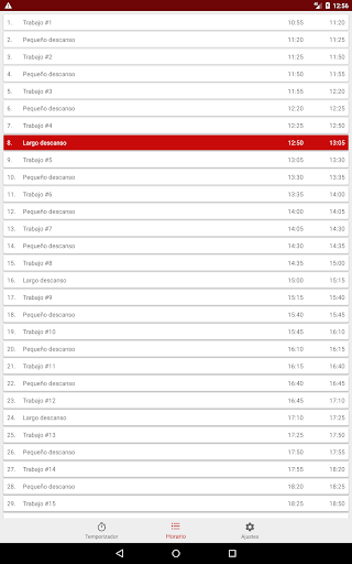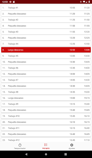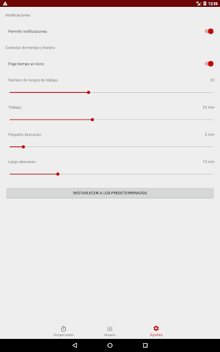 La aplicación crea un horario, intervalos alternos de trabajo (llamados Pomodoros) y se rompe de acuerdo con el siguiente algoritmo: