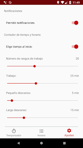 La aplicación enviará una notificación al principio y al final de cada "Pomodoro", en la que verá cuál es el intervalo actual y cuándo terminará.