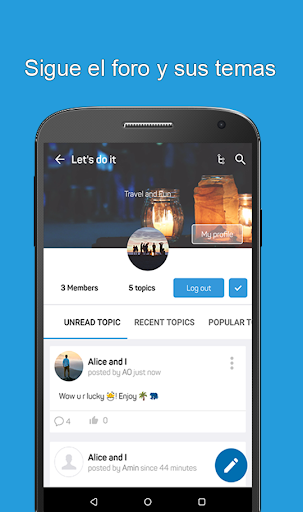 Topic'it te ayuda a navegar, registrarte y participar en foros y discusiones online desde tu teléfono móvil o tablet. Topic'it es uina aplicación muy actual en el área de las comunidades online. Hecha 100% para móviles, con notificaciones en tiempo real, temas seguidos, fácil de compartir, y con una interfaz amigable.
