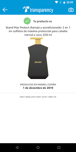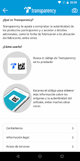 La aplicación de Transparency te permite escanear los productos inscritos en el programa para verificar su autenticidad. Algunos productos participantes también pueden mostrar información adicional tal como vídeos, promociones, ubicación o fecha de fabricación del producto.