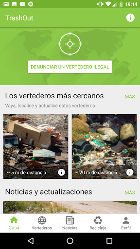 Esta aplicación le permite localizar y hacer informe sobre vertederos ilegales en su barrio, su ciudad o en cualquier lugar del mundo.