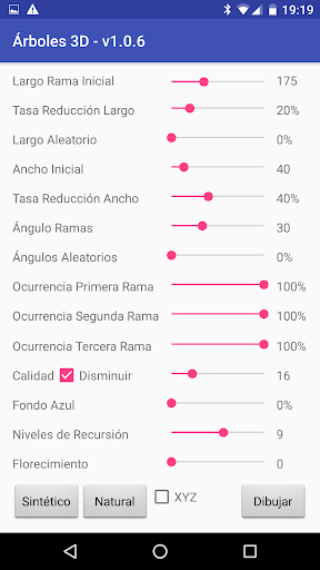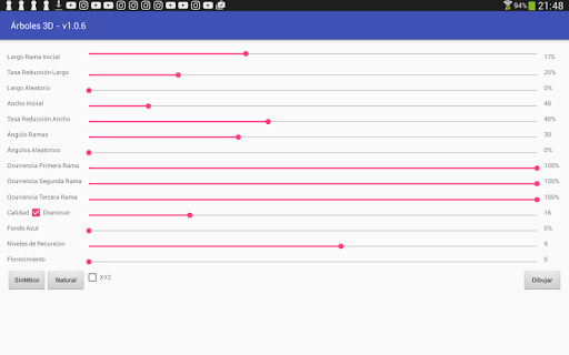 La aplicación genera Árboles Digitales en 3D según la configuración del usuario, utilizando la elegancia de los algoritmos fractales. Puede generar un árbol digital 3D cada vez. Se puede girar sobre diferentes ejes, y hacer zoom. También puede girar automáticamente de forma continua.