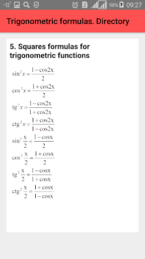 - Squares formulas for trigonometric functions