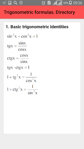 Trigonometric formulas (trigonometric formulas) or trigonometric identities describe the relationship between sine, cosine, tangent, and cotangent and are used in solving mathematical problems.
