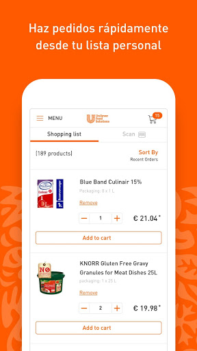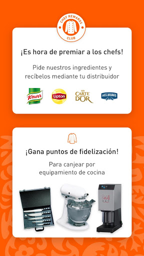 Con la app de Unilever Food Solutions, puedes comprar ingredientes de marcas como Hellmann's, Knorr, Carte d'Or y muchas más. Y como valoramos tu fidelidad, te recompensamos por tus pedidos en la app. Comienza a pedir hoy y acumula puntos para equipamiento de cocina en nuestro programa de Fidelización Puntos Club La Crème.
