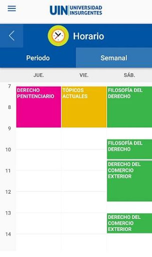 · Mis horarios: conoce tu horario de clases, y datos específicos sobre cada materia.