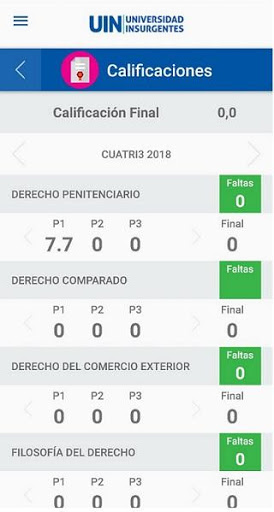 · Calificaciones: verifica tu promedio con las calificaciones durante los parciales.