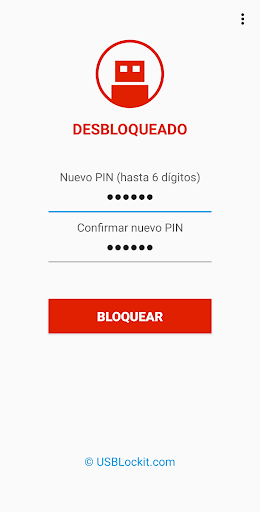 1. Para bloquear la unidad USB y proteger todos sus archivos, simplemente configure un PIN y haga clic en el botón BLOQUEAR.