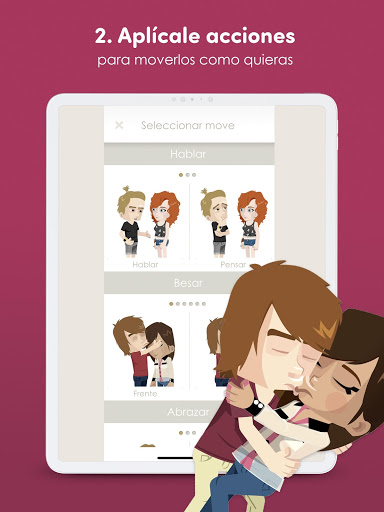 2. Arrastra un avatar sobre el otro y selecciona una acción (besar, golpear, gritar, acariciar…)