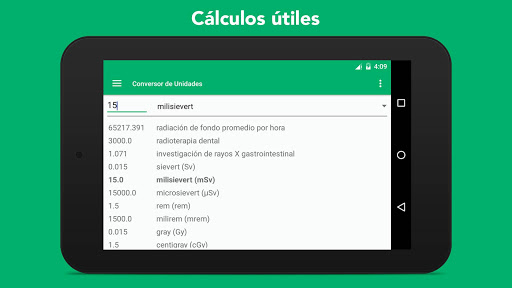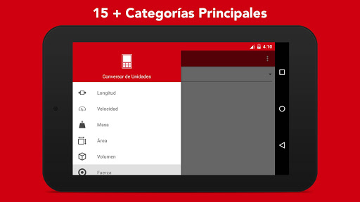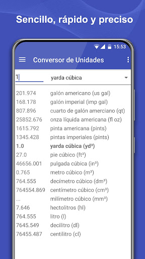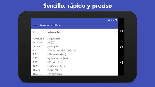 para todo tipo de conversiones que pueda necesitar. Una aplicación "que hay que tener" para el uso diario y conversiones de unidades rápidas. Nuestra aplicación conversora de unidades es una de las aplicaciones de productividad más ligeras del mercado con sólo 2.7 Mb. Diseño material moderno de interfaz de usuario junto con un montón de unidades, la sencillez hizo de esta herramienta una de las aplicaciones de conversión mejor valoradas en la tienda Google Play.