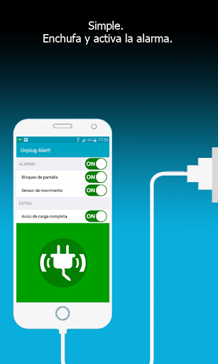 Activa la alarma y si alguien desenchufa el móvil, empezará a emitir un ruido muy alto aunque esté en modo silencio, se bloqueará la pantalla y vibrará.